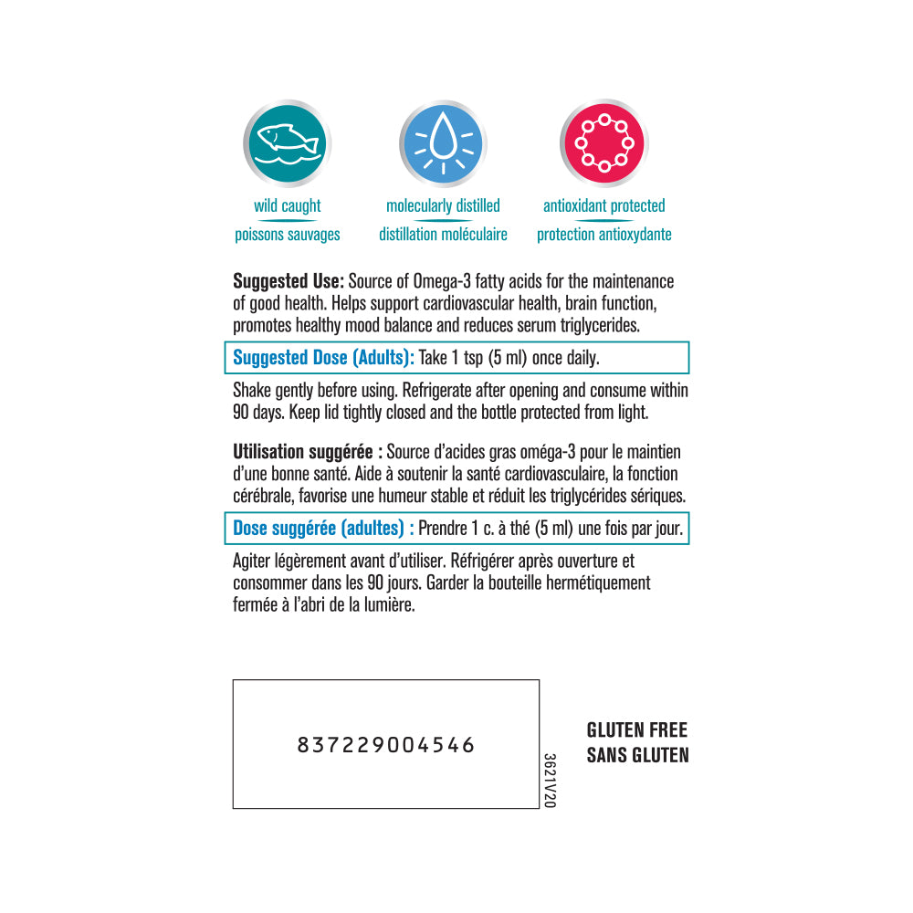 INGREDIENTSMedicinal Ingredients per 1 tspCold Water Fish Oil Blend (Sardine, Anchovy, Mackerel)2,750 mgProviding EPA (Eicosapentaenoic Acid)1,000 mgDHA (Docosahexaenoic Acid)550 mgMixed Tocopherols38 mgExtra Virgin Olive Oil20 mgGrape Seed Oil5 mgLemon Oil5 mgRosemary Leaf Extract5 mgNon-Medicinal IngredientsNatural Flavour, Organic Stevia Leaf Extract, Sunflower Oil. Allergens Contains fish.