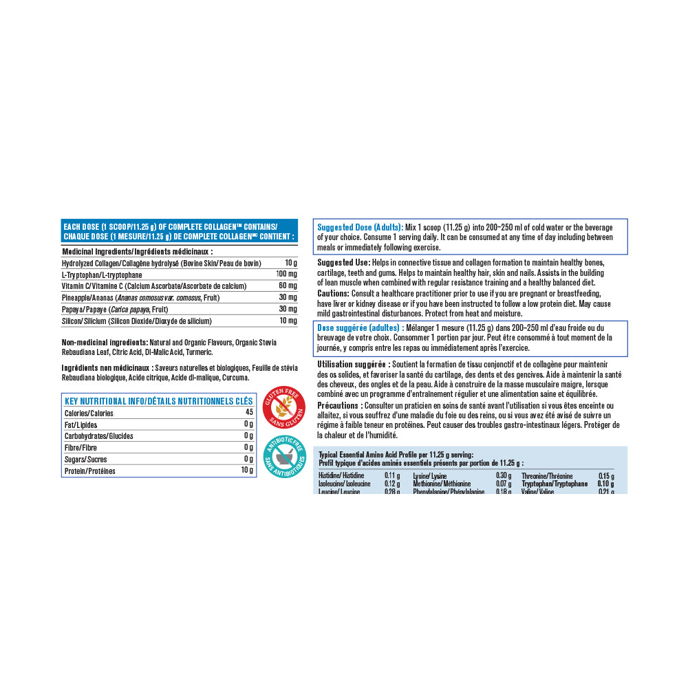 PROGRESSIVE - Complete Collagen - 250 Gram(s) - NPN: 80073874 -- Collagen is an essential part of a healthy, active body. As a key structural protein, it provides the building blocks you need to stay strong while youre busy living life to the fullest.So while active may look different for everyone, we all need the same support. Use Complete Collagen to mend and repair so you can run, bend, lift and stretch with ease.Just scoop, stir, drink and GO