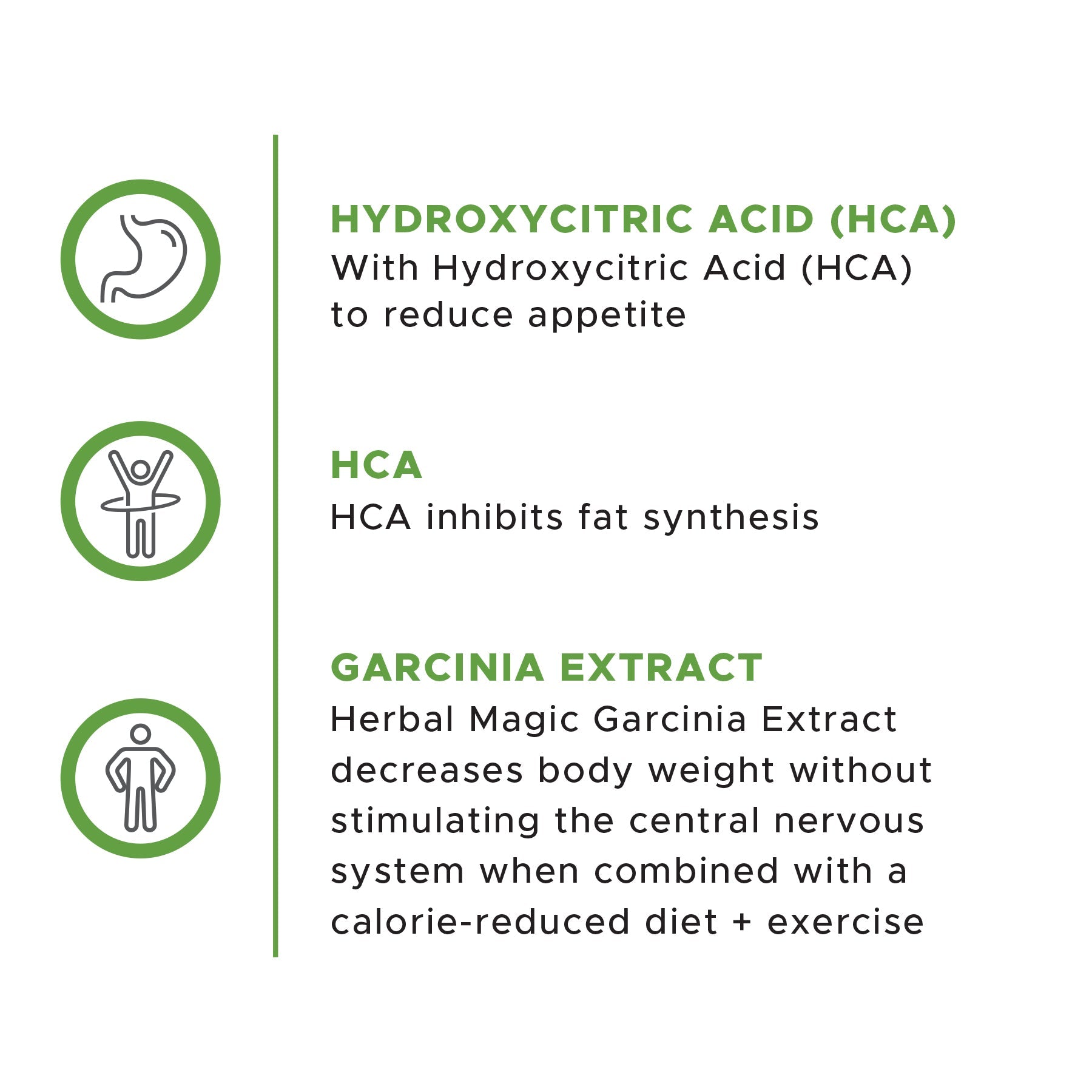 Herbal Magic’s Garcinia Extract has been formulated to help temporarily increase satiety (fullness) to support weight management. This formula contains the key ingredient Hydroxycitric Acid (HCA), which has been shown to reduce appetite, inhibit fat synthesis and decrease body weight without stimulating the central nervous system.